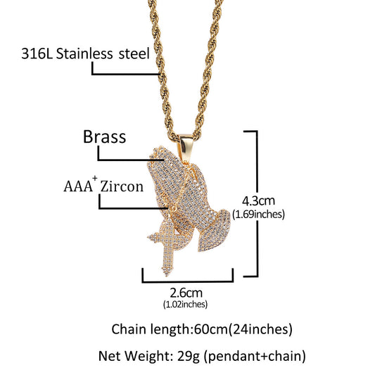 Full diamond hand cross pendant necklace European and American retro hip-hop rap popular accessory